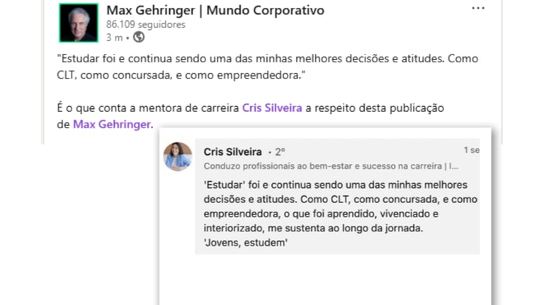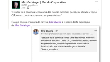 Conteúdo mencionado 7 vezes no LinkedIn por Max Gehringer, autoridade em carreira.